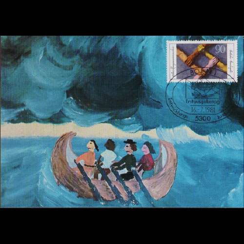 | 说明:贴邮票日-集邮宣传画1全。首日纪念戳。 |