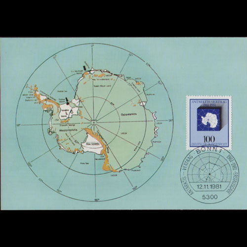 | 说明:贴南极条约20年-地图1全。首日纪念戳。 |