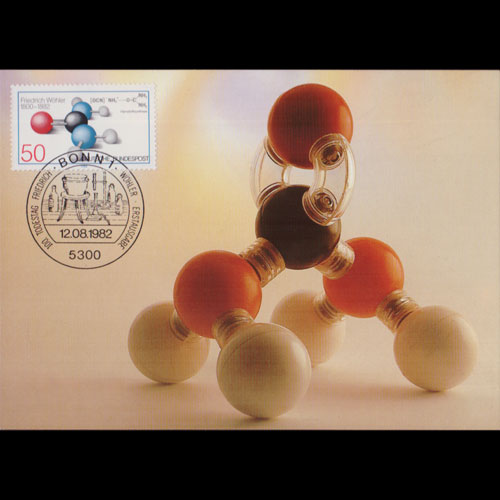 | 说明:贴化学家维勒纪念-分子1全。首日纪念戳。 |