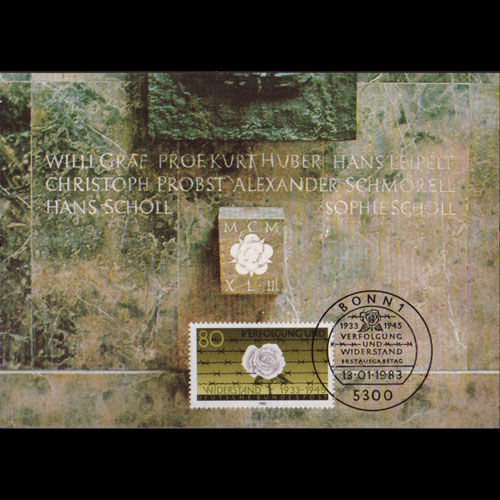| 说明:贴二战迫害和抵抗-铁丝网和玫瑰1全。首日纪念戳。 |