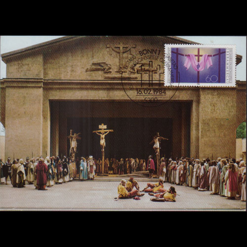 | 说明:贴耶稣受难复活剧-布景1全。首日纪念戳。 |