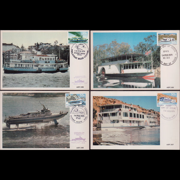 | 说明:贴船只-渡轮和水翼艇等4全。首日纪念戳。共4枚。 |
