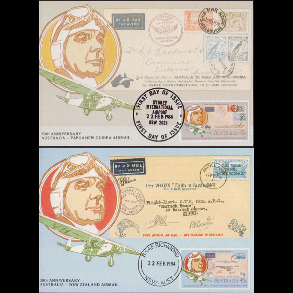 | 说明:贴空邮50年-航空家飞机2全。首日纪念戳。共2枚。 |