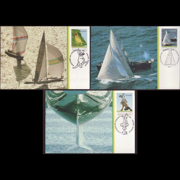 | 说明:贴美洲杯帆船赛3全。首日纪念戳。共3枚。 |