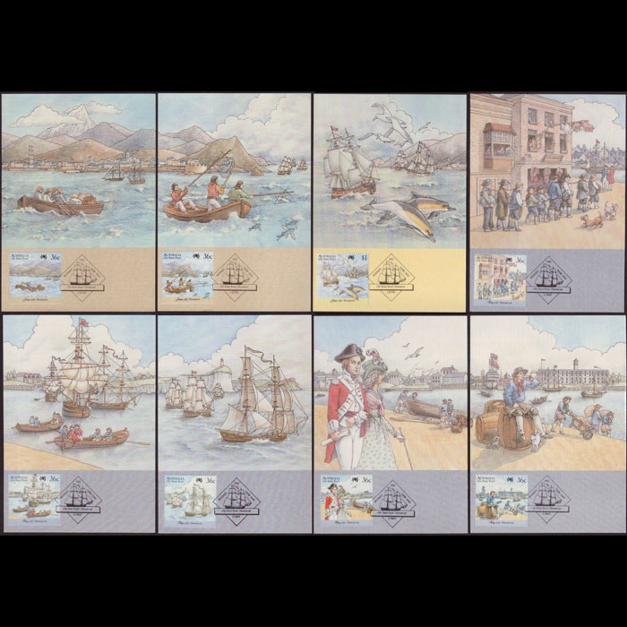 | 说明:贴澳洲200年-英舰队出发8全。首日纪念戳。共8枚。 |