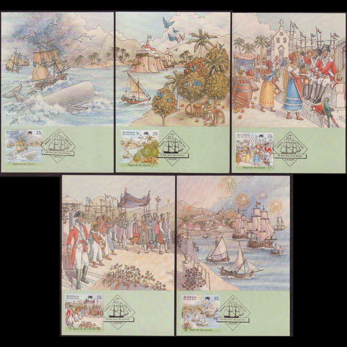 | 说明:贴澳洲200年-英舰队抵澳5全。首日纪念戳。共5枚。 |