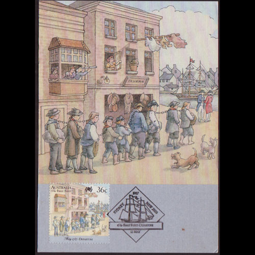 | 说明:贴澳洲二百年-囚犯流放澳洲(36c)。首日纪念戳。 |