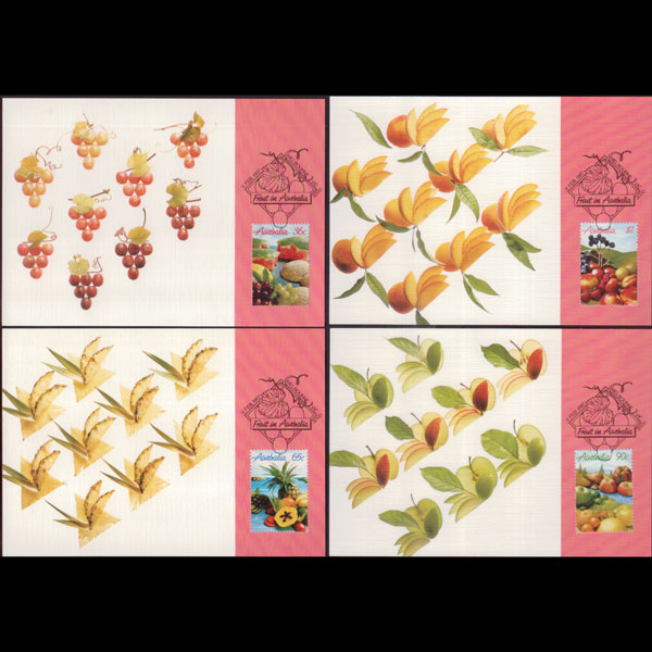 | 说明:贴水果-西瓜和葡萄等4全。首日纪念戳。共4枚。 |