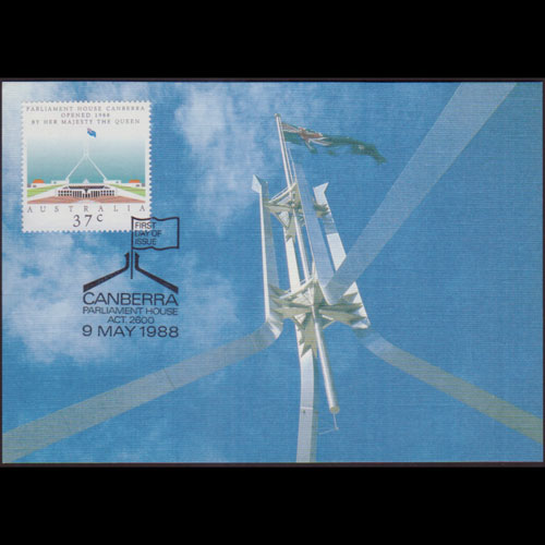 | 说明:贴堪培拉新国会大厦1全。首日纪念戳。 |