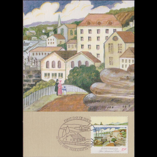 | 说明:贴早期田园风光-海港建筑和移民船(39c)。首日纪念戳。 |