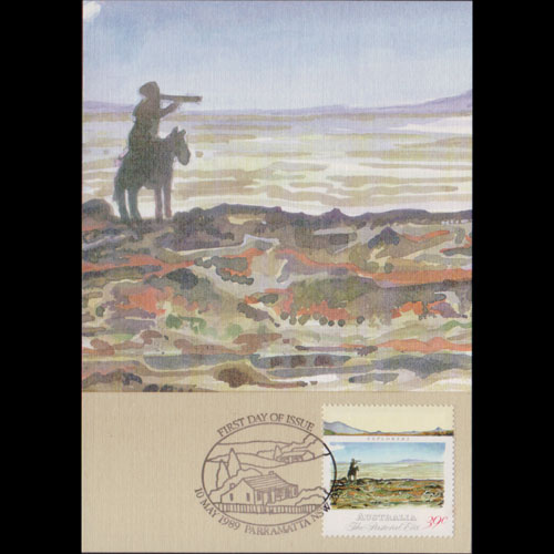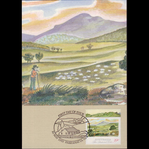 | 说明:贴早期田园风光-探险者(39c)。首日纪念戳。 |