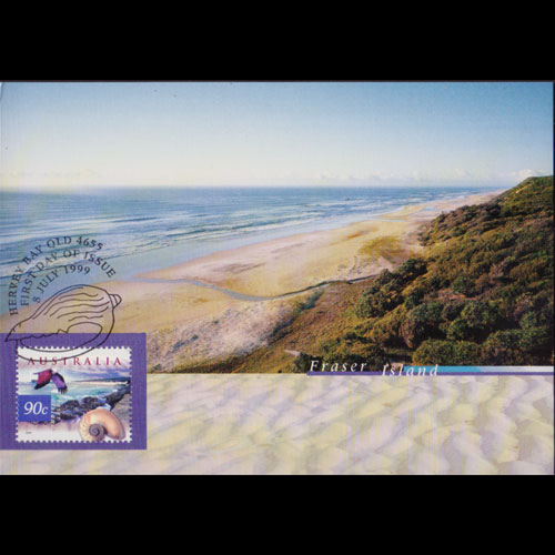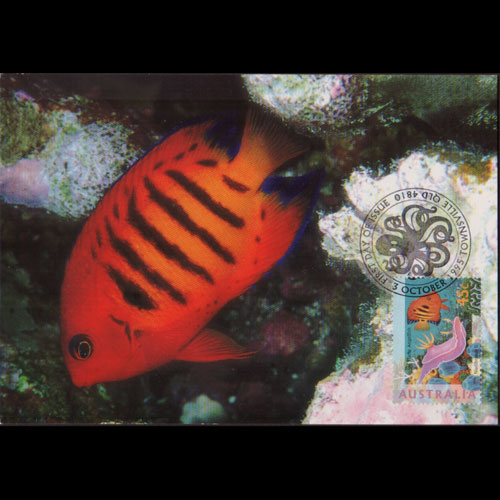 | 说明:贴弗雷泽岛生物-鹦鹉螺和鹰(90c)。首日纪念戳。 |