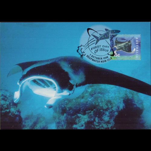 | 说明:贴海洋生物-蝠鲼(45c)。首日纪念戳。 |