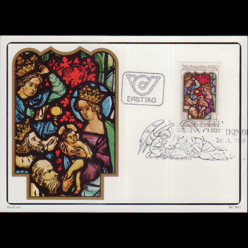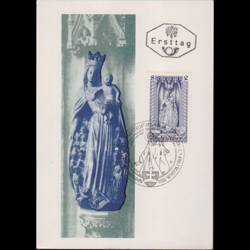 | 说明:贴维也纳圣斯蒂芬大教堂圣母雕像(2s)。首日纪念戳。 |