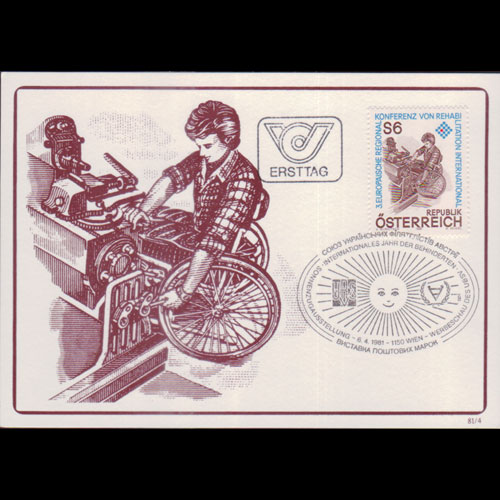 | 说明:贴残疾人就业-机床轮椅1全。首日纪念戳。 |