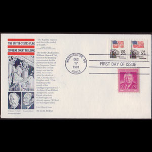 | 说明:贴1981年国旗和最高法院20c。销WASHINGTON首日戳。 |