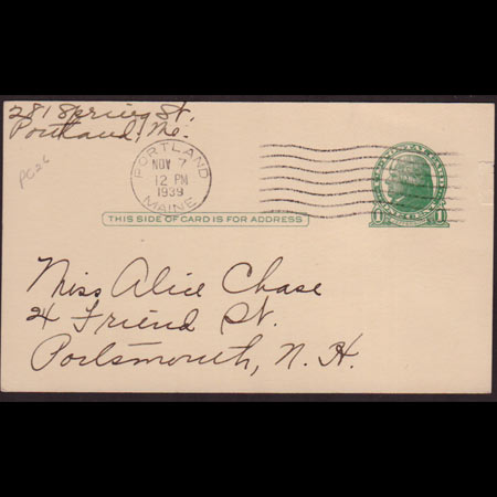 | 说明:杰斐逊总统(1c)。销ELGIN星条旗日戳和PORTSMOUTH到达戳。 |
