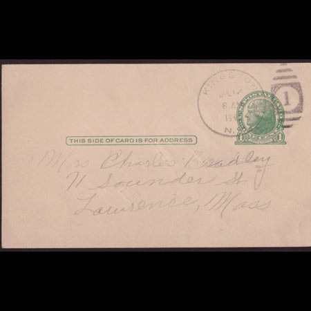 | 说明:第25任总统麦金莱(1c)。销HAVERHILL星条旗图日戳。 |