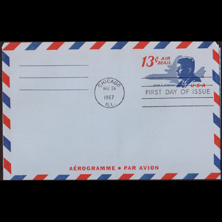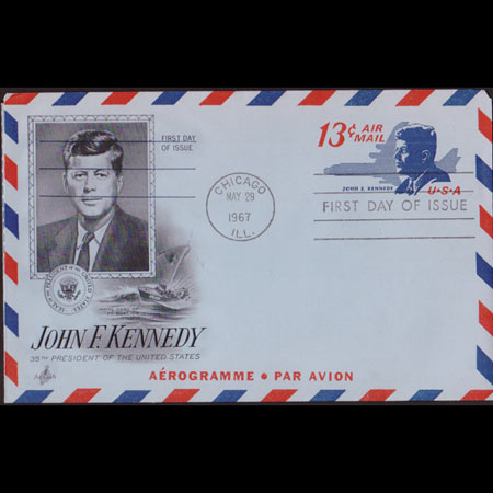 | 说明:斯科特编号UC39。肯尼迪总统。CHICAGO首日戳。由Art Craft设计。 |