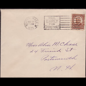 | 说明:贴1930年哈丁总统1.5c。销BOSTON MAIL EARLYFORCHRISTMAS宣传戳(圣诞提早寄信)。背面无戳。 |