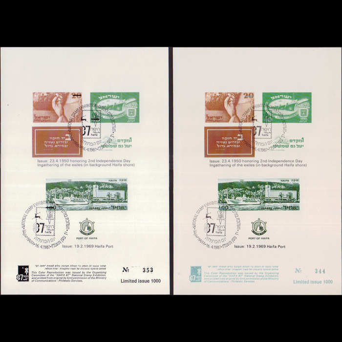 | 说明:1950年独立日和1969年海法港复制图。邮电部特许为海法全国邮展发行。共2枚。 |