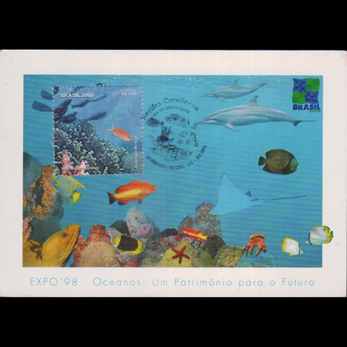 | 说明:贴珊瑚礁鱼类(40c)。首日纪念戳。 |