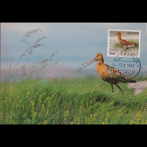| 说明:贴1988年鸟类-塍鹬(5k)。日戳17.9.1991。 |