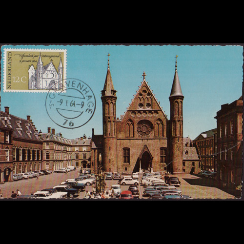 说明:贴国会500年-海牙骑士楼1全。首日戳。