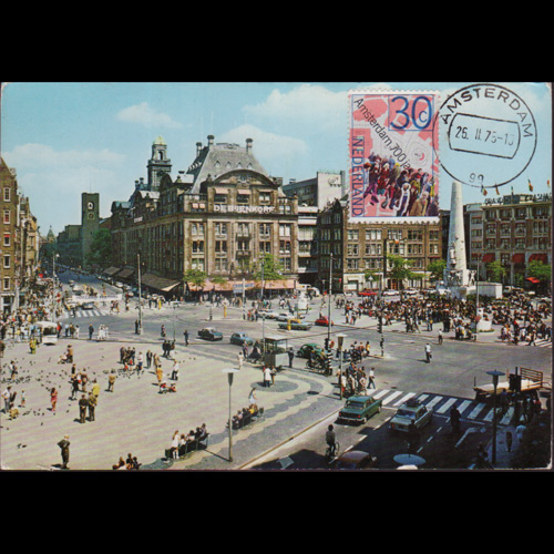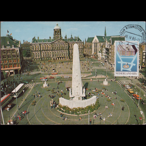 说明:贴1982年发行首都王宫-水坝广场(60c)。日戳18.IV 83。