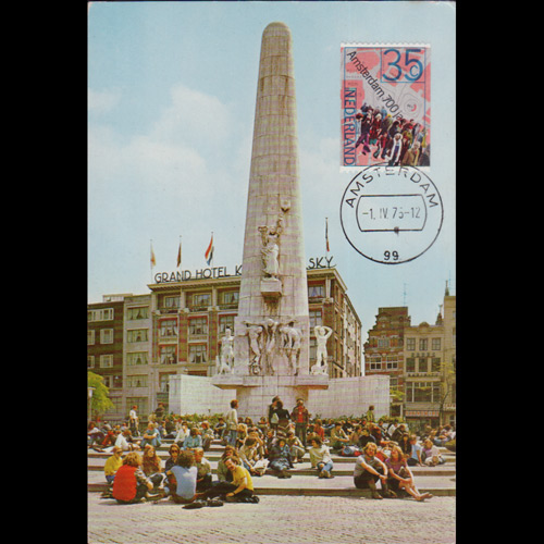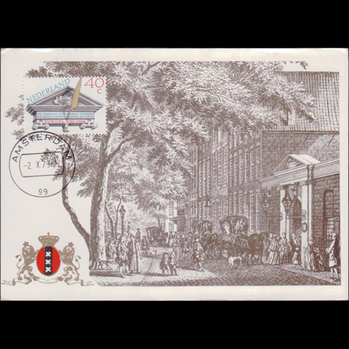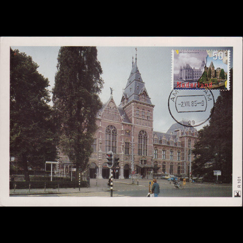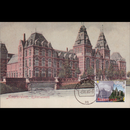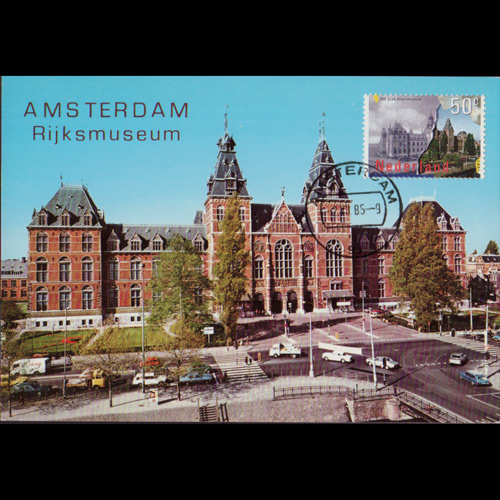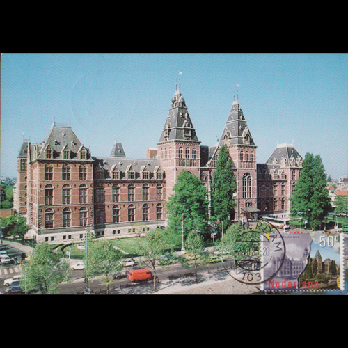 说明:贴阿姆斯特丹国家美术馆百年(50c)。首日戳。