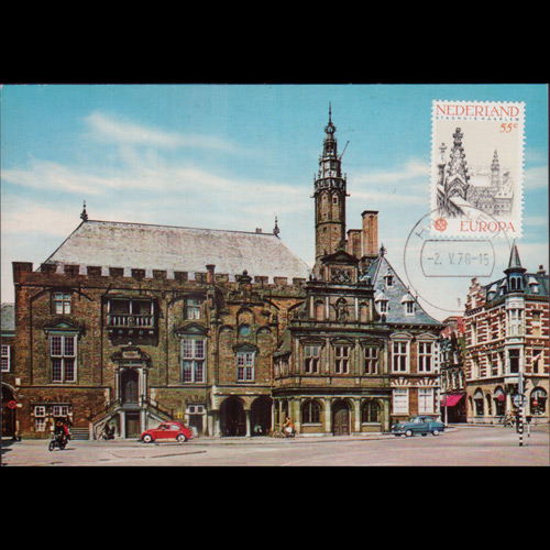 说明:贴欧罗巴-哈勒姆市政厅1全。首日戳。