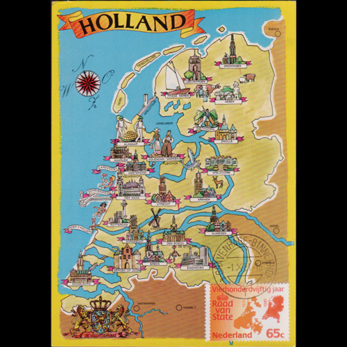 说明:贴荷兰地图-商会175年1全。首日戳。