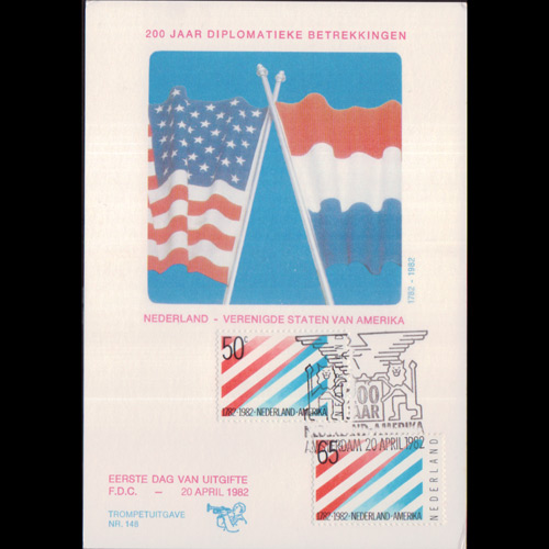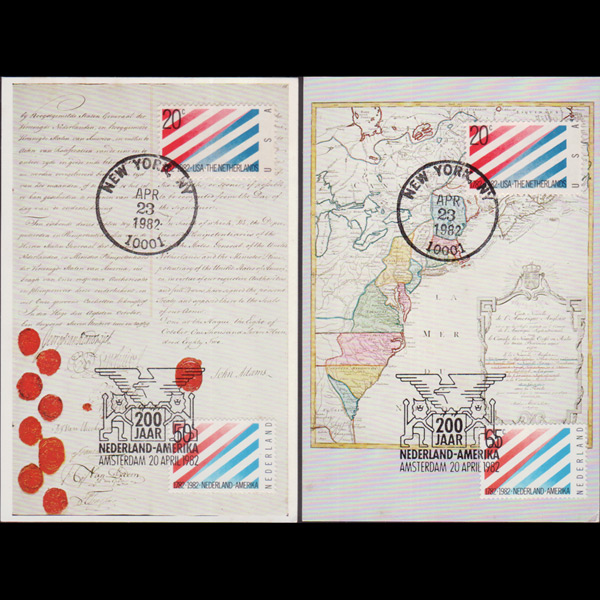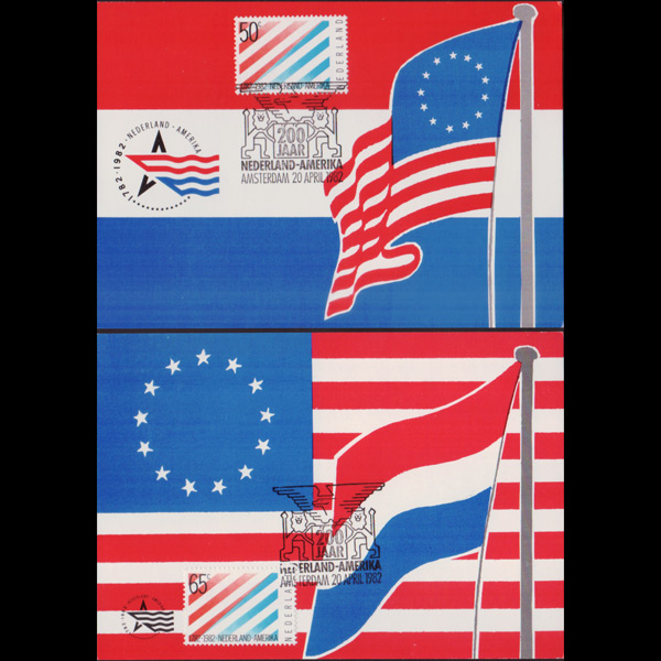 说明:贴美-荷建交二百年2全。首日纪念戳。共2枚。