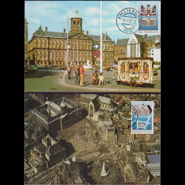说明:贴首都王宫-水坝广场2全。首日戳。共2枚。