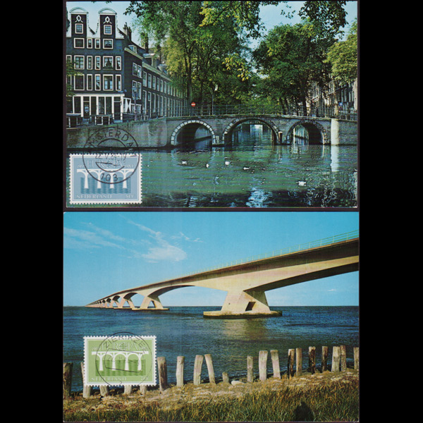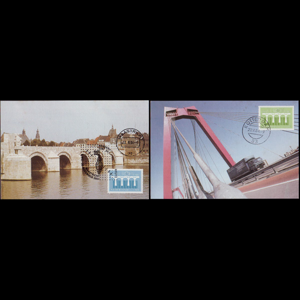 说明:贴欧罗巴-桥形图2全。首日戳。共2枚。